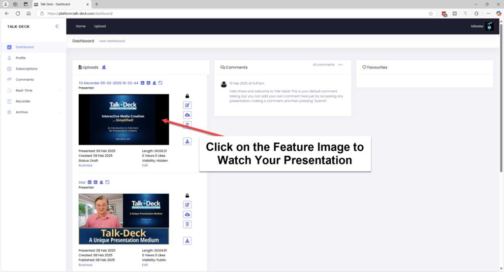 - Your published Talk-Deck will now appear at the top of the Uploads Panel.