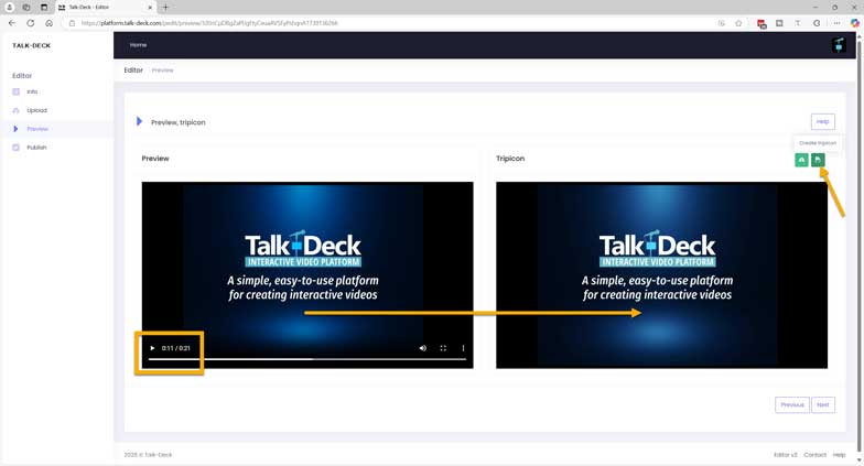 - Auto Creator – Automatically merges the video and timeline to create a Talk-Deck, which will appear at the top of your Uploads Panel in the Dashboard.